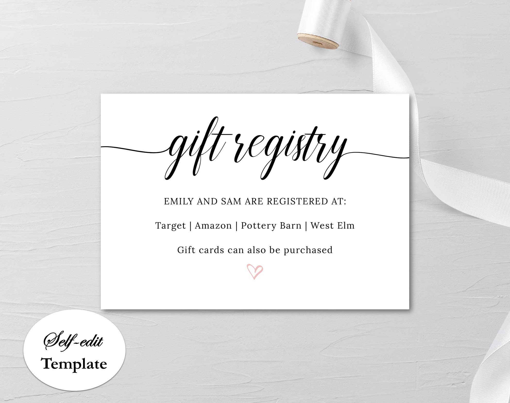 Printable Wedding Registry Card Template Gift Registry Card Etsy Canada